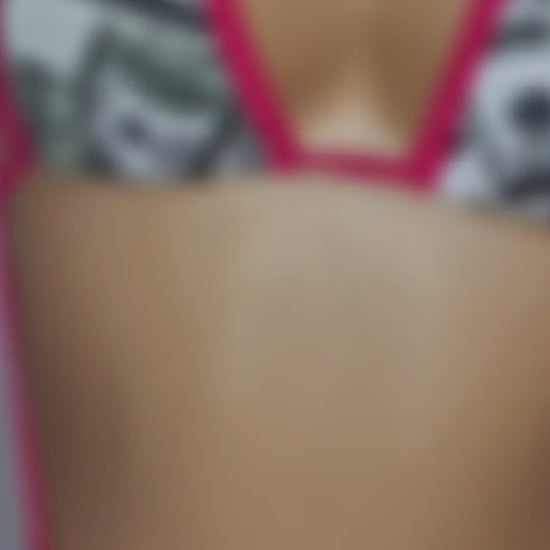 Elevate your nightlife with the Pink Money Print Thong Set! Crafted from eye-catching money print lycra spandex, it glows under UV lighting for a mesmerizing effect. The stylish O-ring detail adds a daring touch, making it ideal for exotic dancers and club wear. Shine brighter and feel bold!