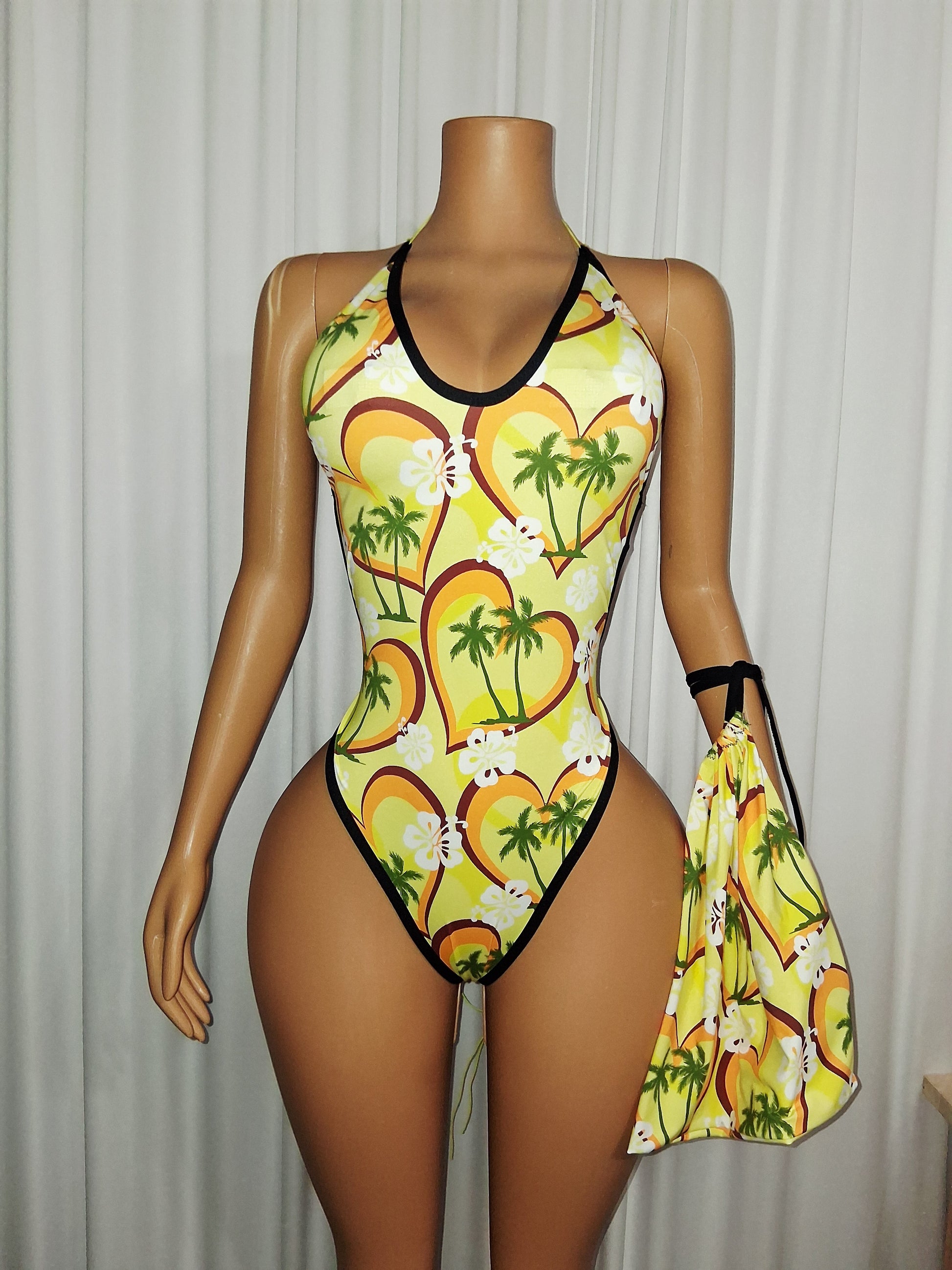 Designed for size medium/large, this Palm Bodysuit offers full coverage and a unique palm tree print. Perfect for strippers, exotic dancers, and raves, this outfit even includes a moneybag to complete the look. Made with spandex fabric, it's sure to stand out under UV lighting. Ships next day, Monday through Friday, excluding holidays.