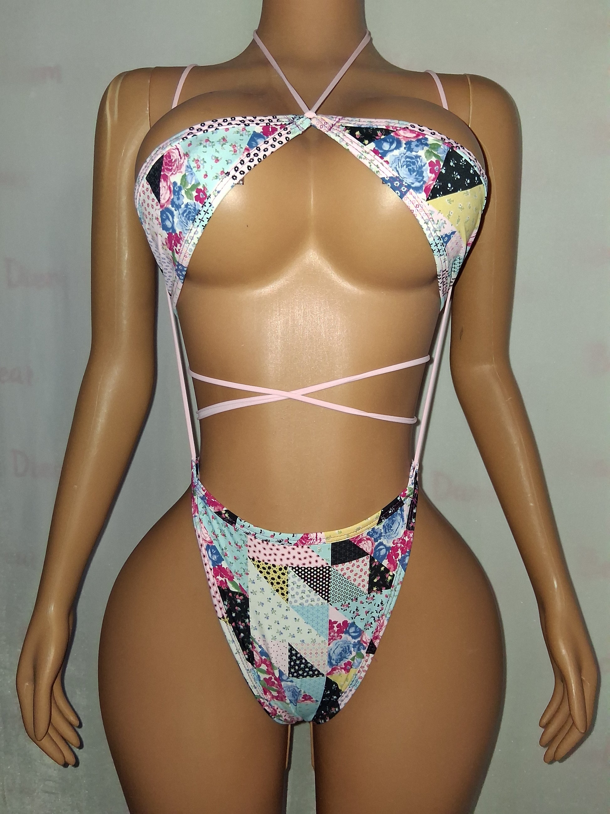 Elevate your style with the Patch Bandana Set! This vibrant 3-piece outfit, crafted from pastel patch print lycra spandex, glows under UV lighting, making it a standout choice for exotic dancers, cam girls, and festival goers. Enjoy flirty fun and medium coverage that keeps you confident and ready to shine! Plus, with same-day shipping available, your new favorite outfit is just a click away!